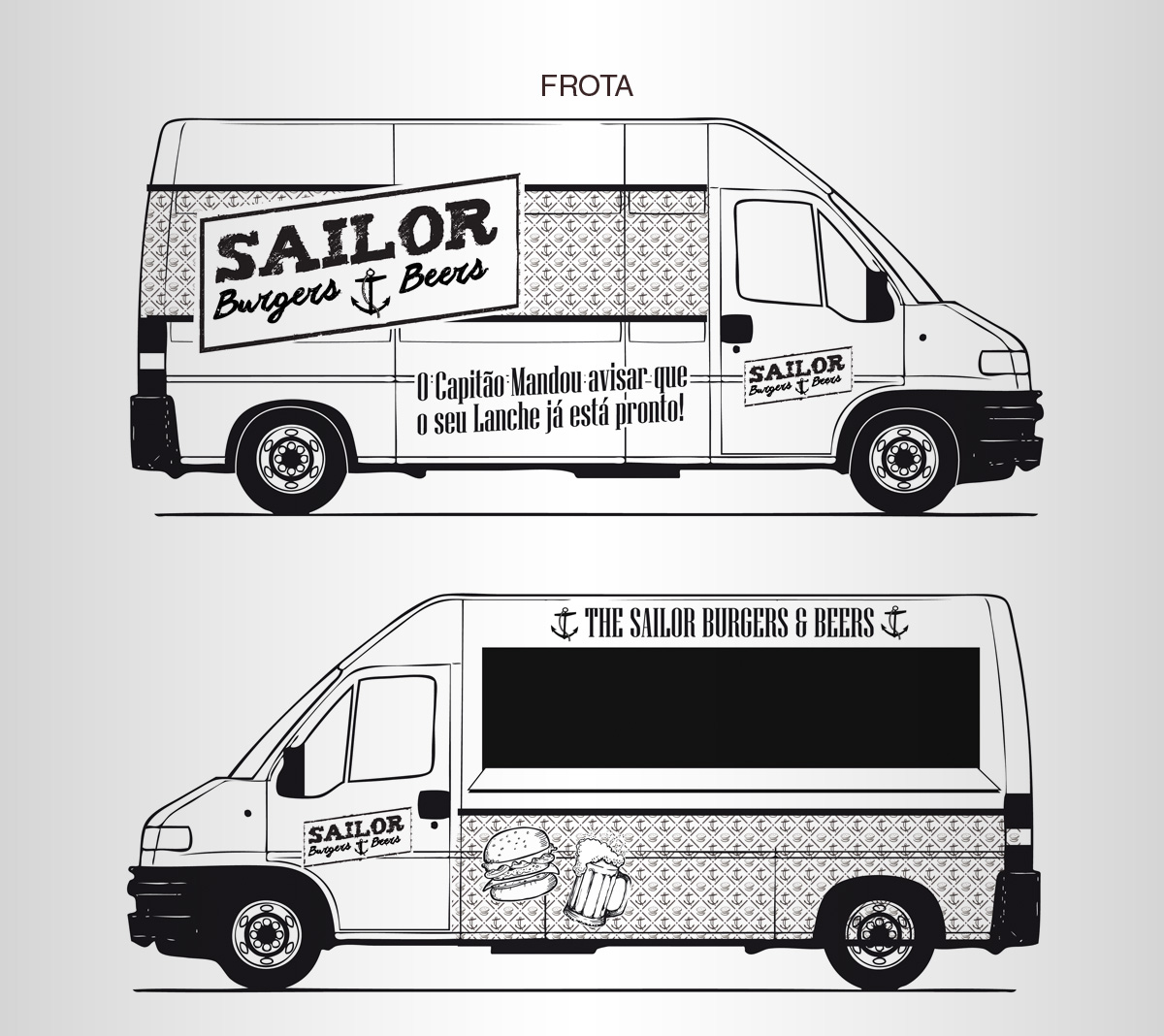 Desenvolvimento do material para o Truck Food Sailor Burgers & Beers, que ficara localizado na região de Pinheiros.