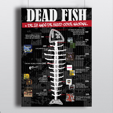 Desenvolvimento do Infográfico sobre a banda nacional de Hard Core Dead Fish, após analisar o material enviado pelo cliente, desenvolvemos um infográfico em formato de linha do tempo, exibindo todas as grandes noticias da banda, de forma descontraída de divertida